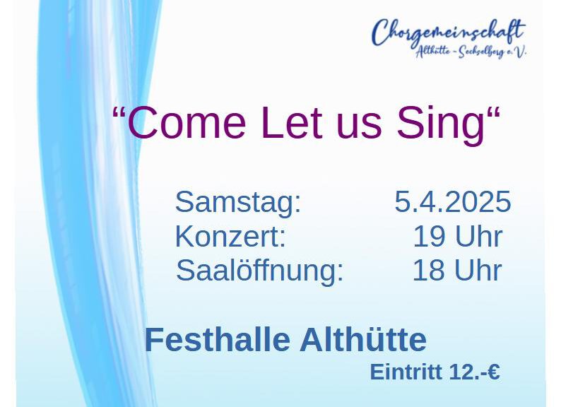 Ab 12.4.2024 lernen wir neue Lieder. Der Einstieg ist jetzt ideal. Wir laden alle, die nicht mehr Freitag abends auf der Couch liegen wollen, ein, mit uns zu singen.